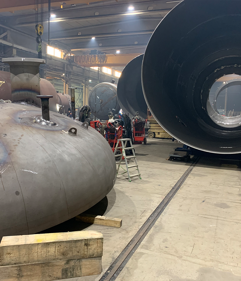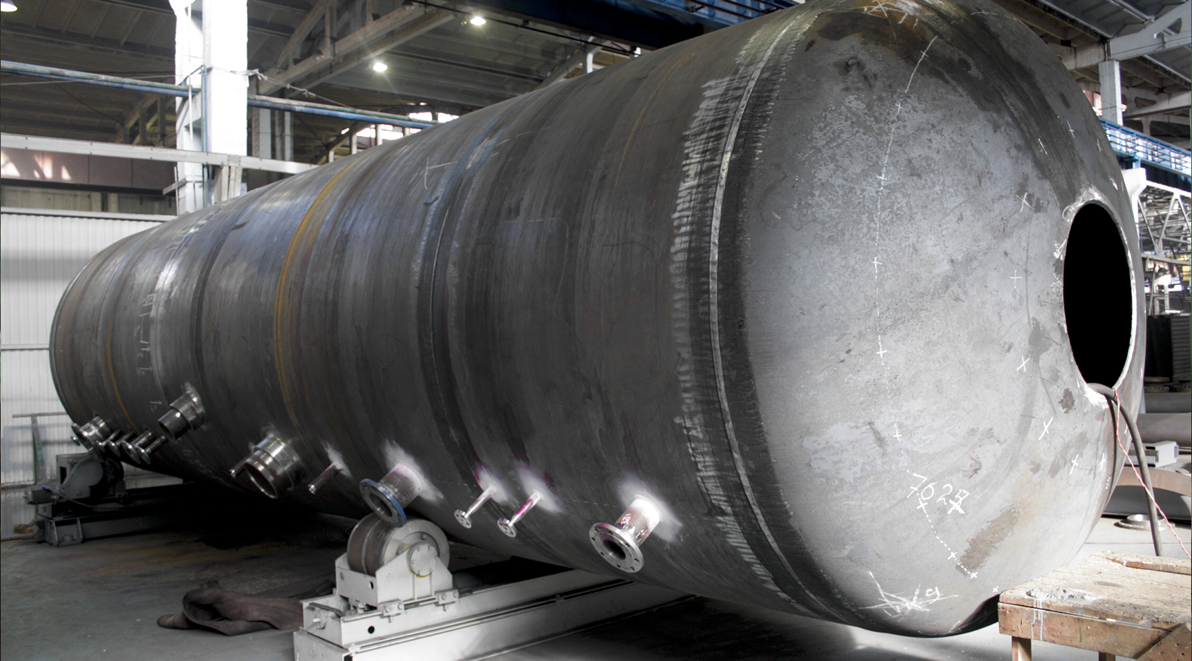 Between the trays, the steam comes into contact with the water, counter-flowing from below to the top of the tank.